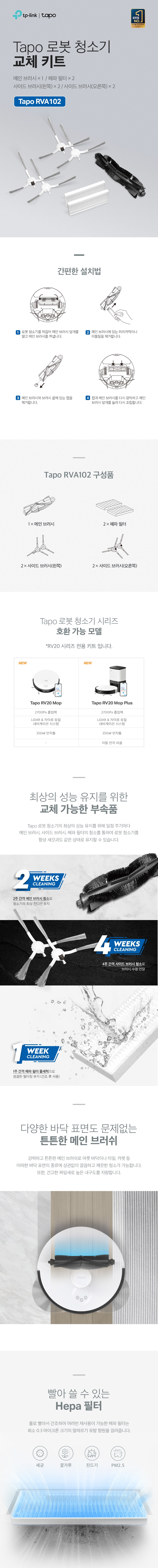 티피링크 로봇 청소기 부속품 키트 RV20 시리즈전용 Tapo RVA102