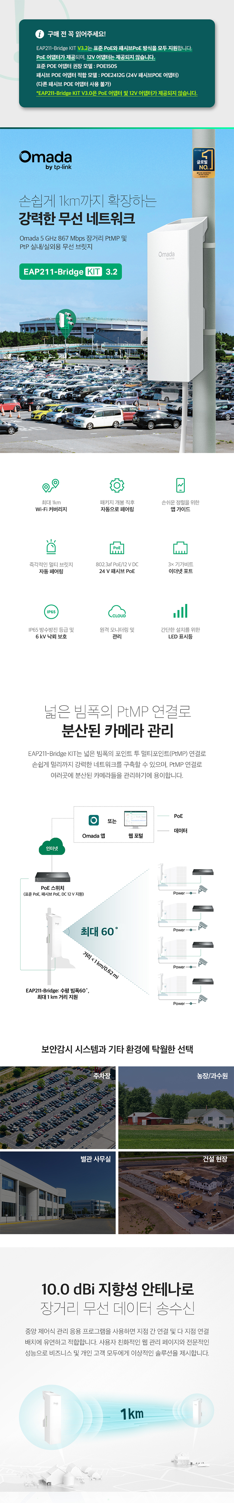 티피링크 EAP211-Bridge KIT 장거리 실외 엑세스포인트 무선확장기