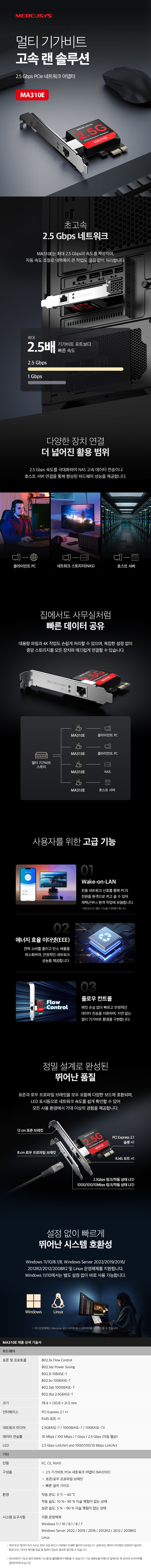 [ 기업고객전용 ] 머큐시스 2.5Gbps MA310E PCIe 네트워크 어댑터 데스크탑 와이파이 무선 랜카드