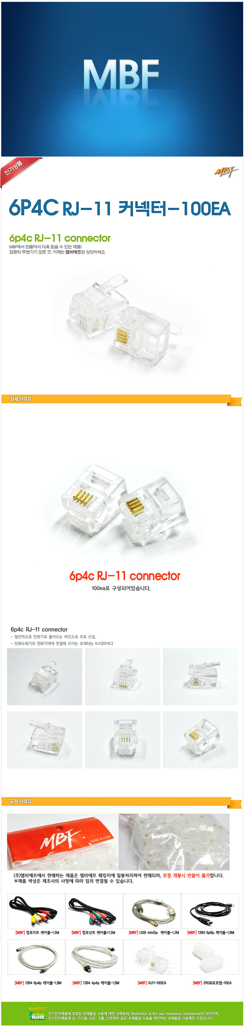 [ 기업고객전용 ] RJ11 (6P4C) 커넥터 (100개입) MB911