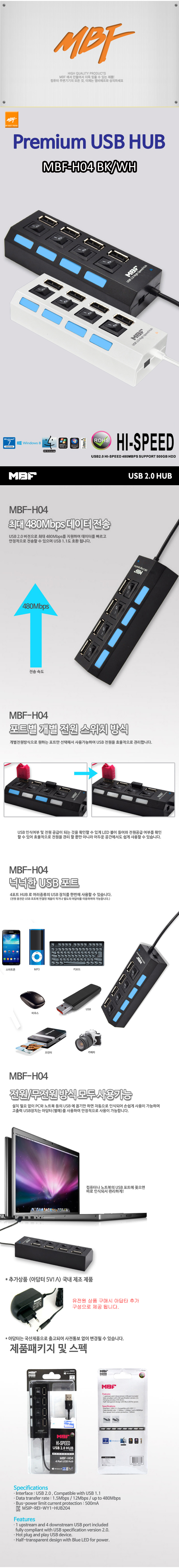 [ 기업고객전용 ] USB2.0 4포트 허브 (유전원) 화이트 MB585