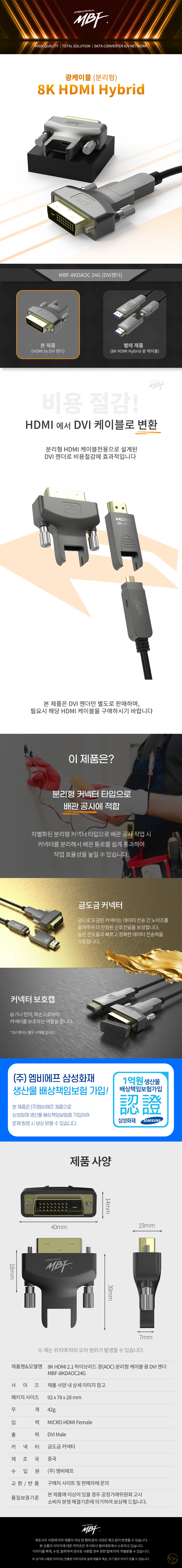 [ 기업고객전용 ] 8K HDMI 2.1 AOC 단자분리형 하이브리드 광케이블 용 DVI 젠더 MB340