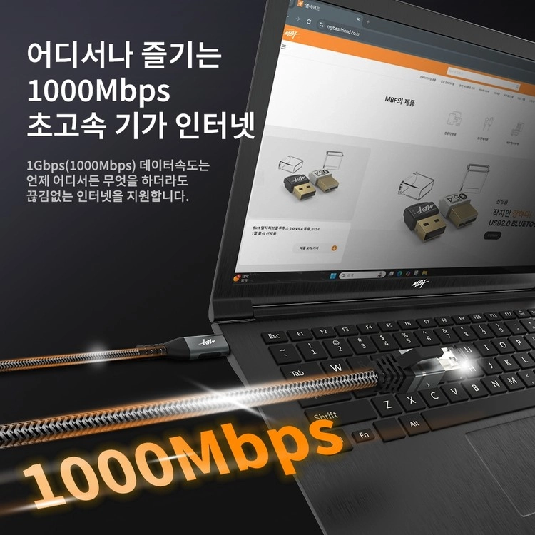 엠비에프 USB C타입 TO LAN 케이블 노트북 랜선 랜젠더 기가비트 2M