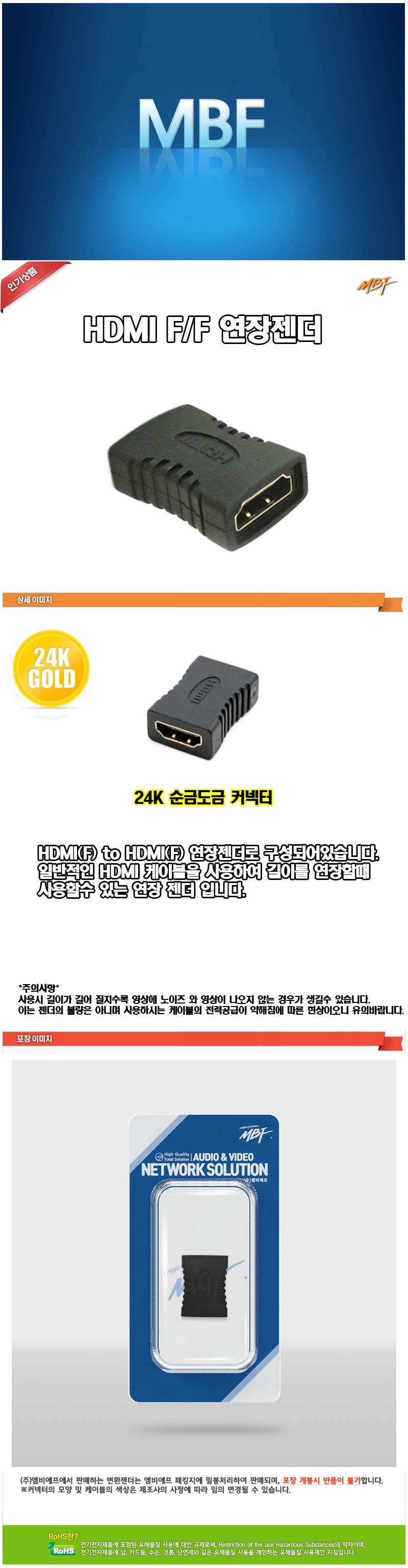 [ 기업고객전용 ] HDMI F/F 연장 젠더 [고급포장] MB9010