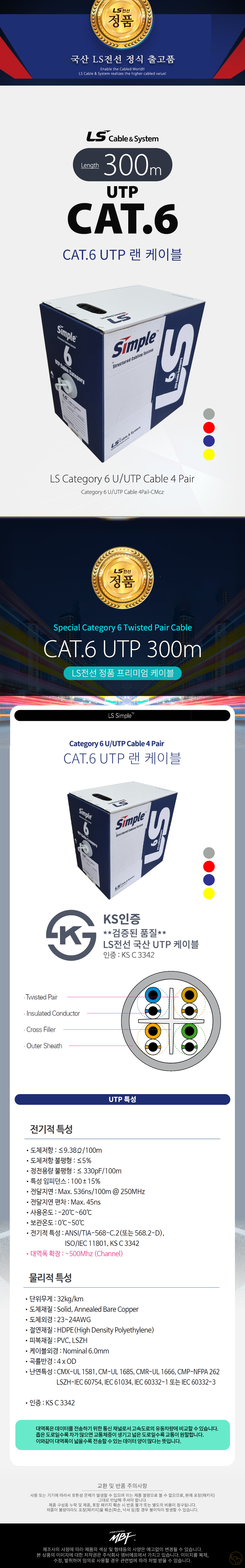CAT.6 랜케이블 1Gbps (250MHz)  UTP 케이블 길이 300M 박스(롤) 케이블 단선