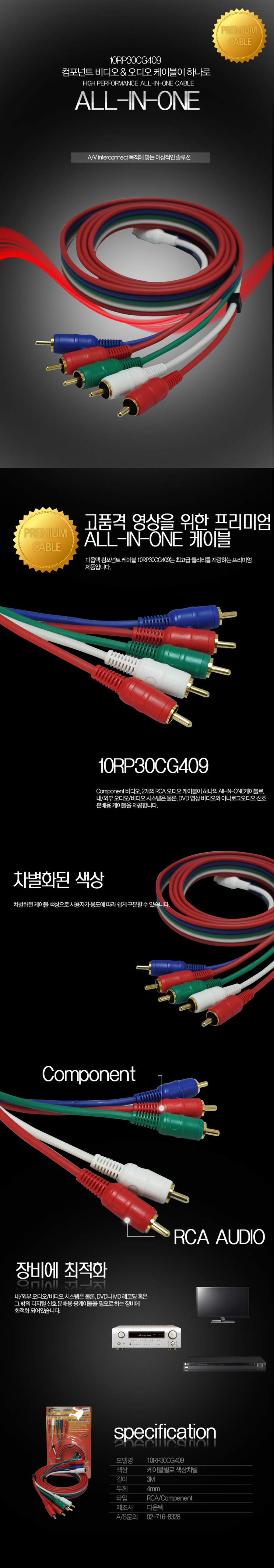 [ 기업고객전용 ]디옵텍 올인원 케이블 3M 4∮(컴포넌트/2RCA오디오) 10rp30cg409