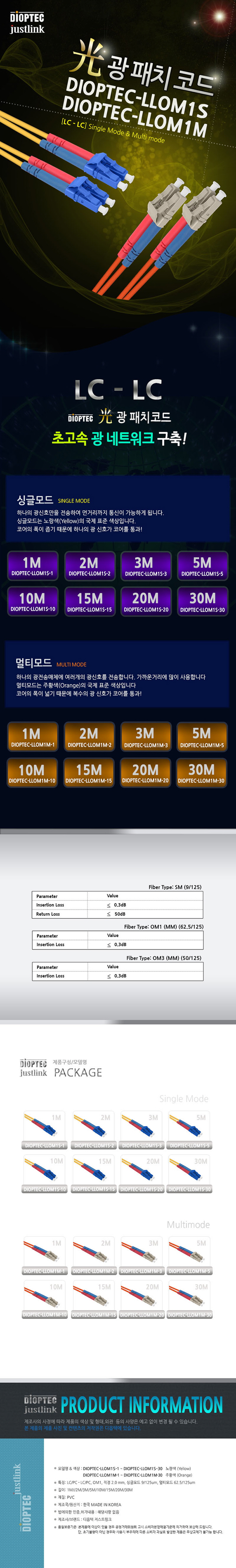 [ 기업고객전용 ]디옵텍 광점퍼코드 LC-LC-2C-MM-10M DIOPTEC-LLOM1M-10