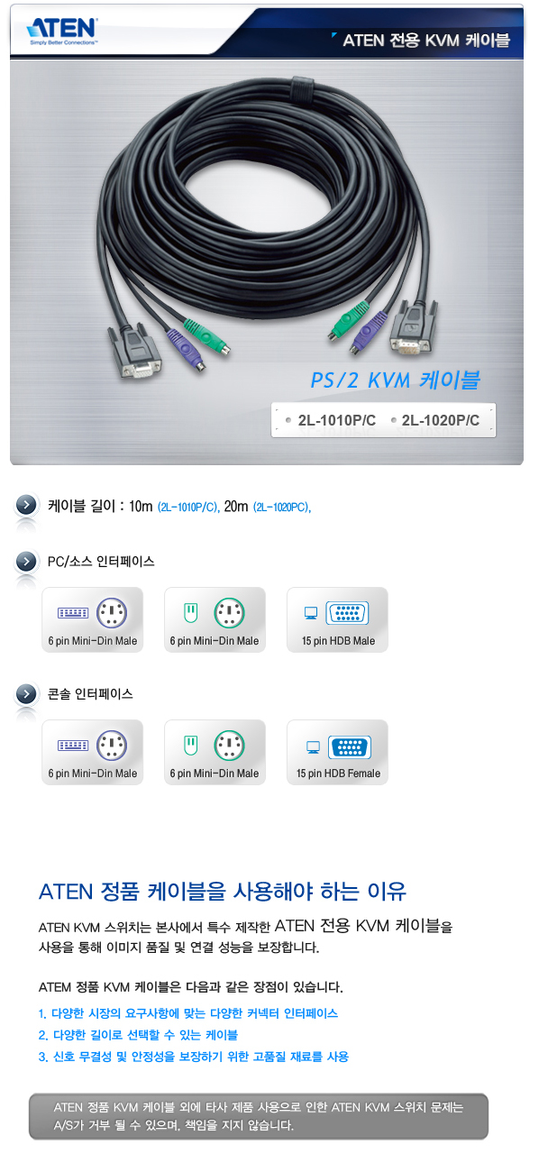 [ATEN] 에이텐 KVM케이블 (PS2) 10M [2L-1010P/C]