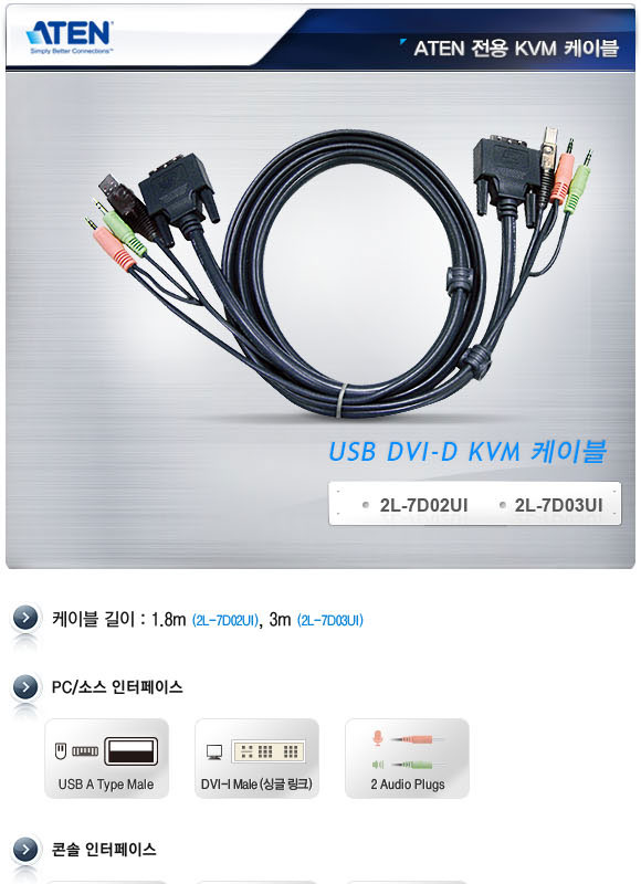 [ATEN] 에이텐 KVM 케이블 (USB, DVD-I,오디오) 2M [2L-7D02UI] *구매전 재고 문의
