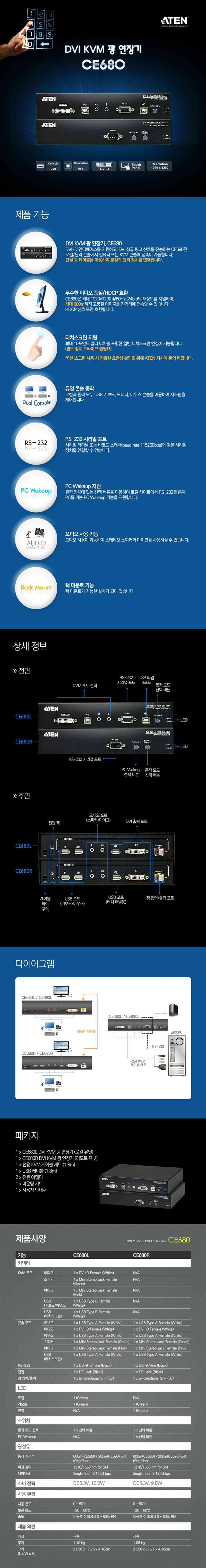[ATEN] USB DVI KVM 광 연장기 리피터 (1920x1200@600m) [CE680-AT-K]