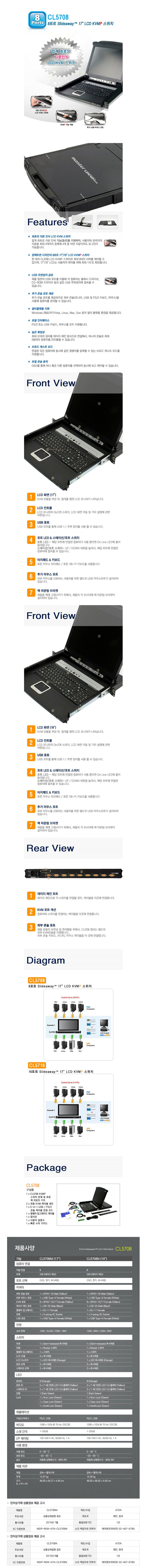 [ATEN] 에이텐 43.18cm LCD KVM 스위치 8포트 [CL5708IM-ATA-KK]