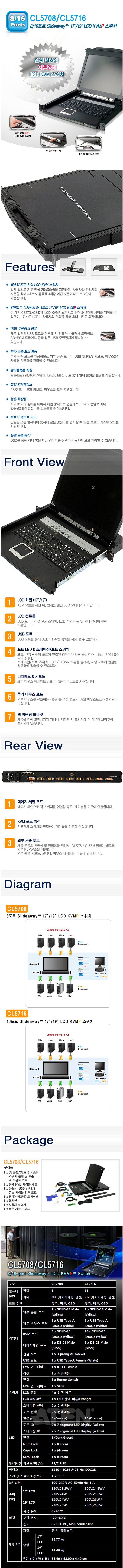 [ATEN] 에이텐 [LCD KVMP 스위치/16:1/USB/케이블포함] [CL5716N-ATA-KK]