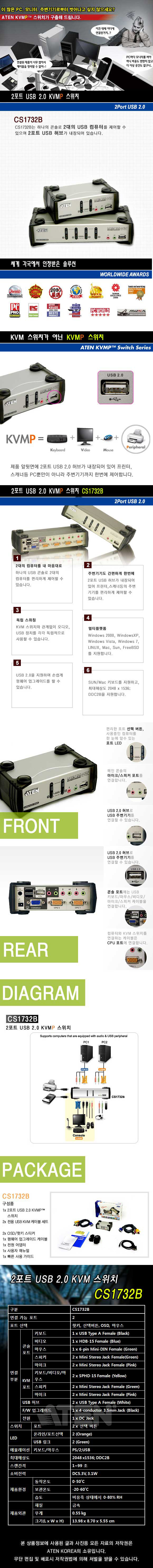 [ATEN] 에이텐 [KVM스위치/2:1/PS2,USB/오디오/케이블포함] [CS1732B-AT-K]