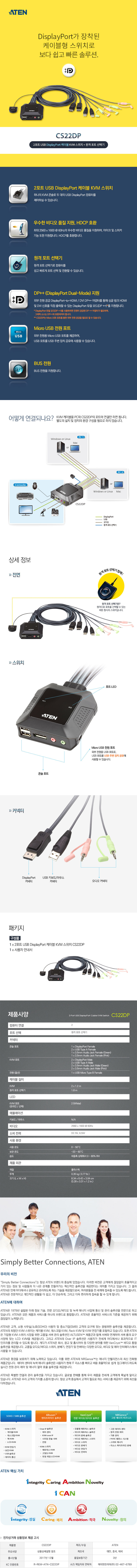 [ATEN] 에이텐 [DP KVM스위치/2:1/USB/케이블일체형] [CS22DP-AT]