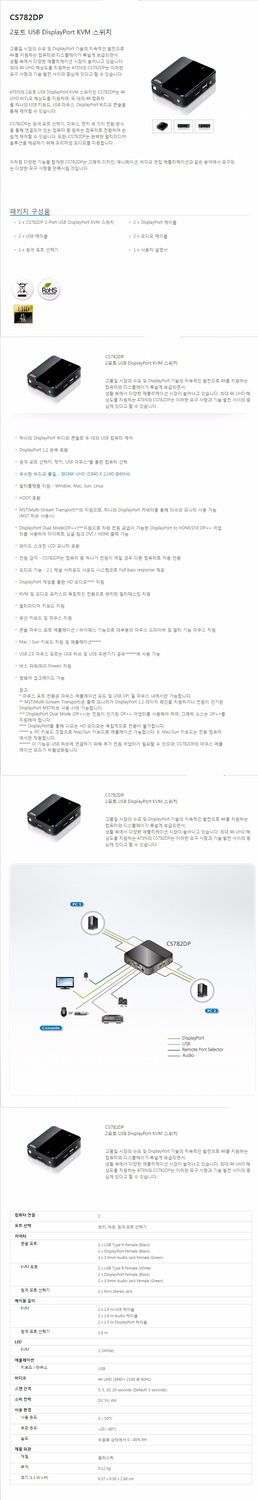 [ATEN] 에이텐 [DP KVM스위치/2:1/USB/오디오/케이블포함] [CS782DP-AT]