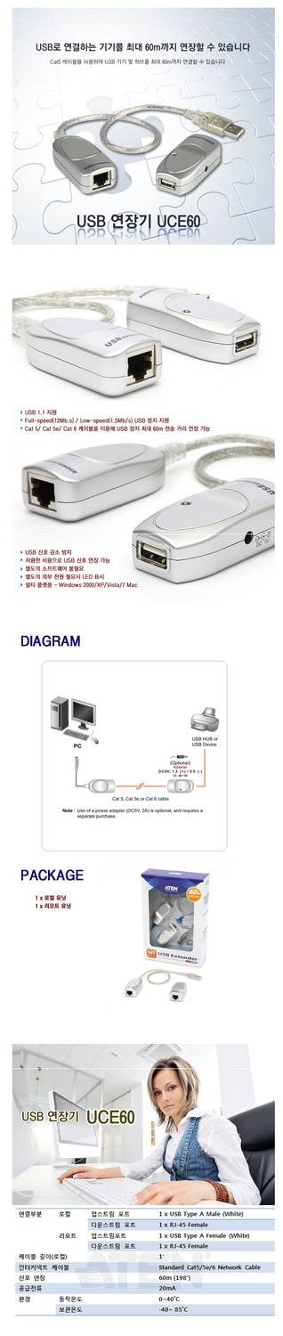 [ATEN] 에이텐 [USB 1.1 리피터 송수신기 세트, UCE60 *RJ-45 최대 60m 연장] [UCE60-AT]