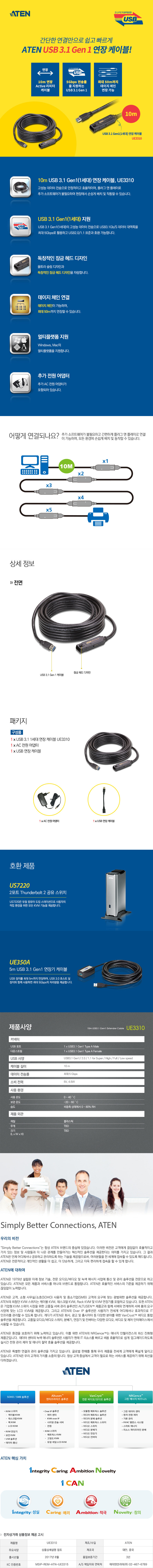 [ATEN] 에이텐 [USB3.1 1세대 연장 리피터 케이블 [AM-AF] 10M] [UE3310-AT-K] *구매전 재고 문의