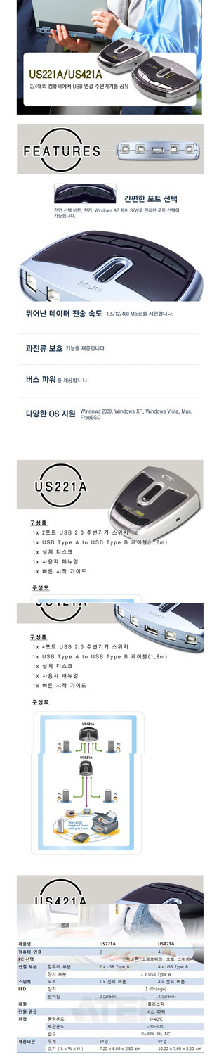 [ATEN] 에이텐 [USB 선택기 1:4] A포트1 B포트4] [US421A-AT]