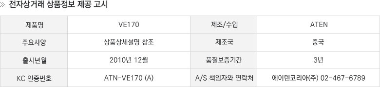 [ATEN] 에이텐 [VGA/오디오 Cat.5 연장기 (1024 x 768@300m)] [VE170-AT-K]
